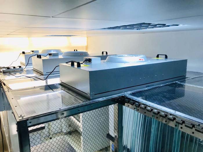 潔凈棚高效過濾單元2設置在風機1下方,與風機1緊密相連,高效過濾單元2可根據不同客戶的實際需要選擇不同的凈化級別,在高精科技的生產研發中,比如在半導體工業中,一般采用凈化級別很高的PTFE超高效過濾器;