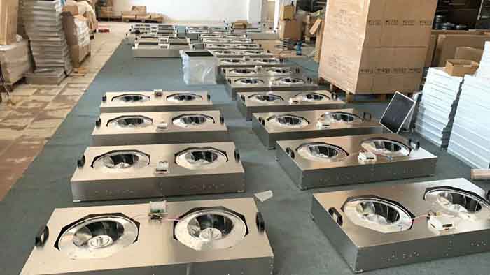 FFU可模塊化連接使用,使得FFU廣泛應用于無塵室,無塵操作臺,無塵生產(chǎn)線,組裝式無塵室和局部百級等應用場合。利用FFU層流罩可以制作簡易潔凈工作臺,潔凈棚,潔凈傳遞柜和潔凈存衣柜。