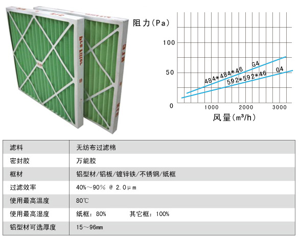 紙框折疊式初效過濾器風阻及運行條件說明