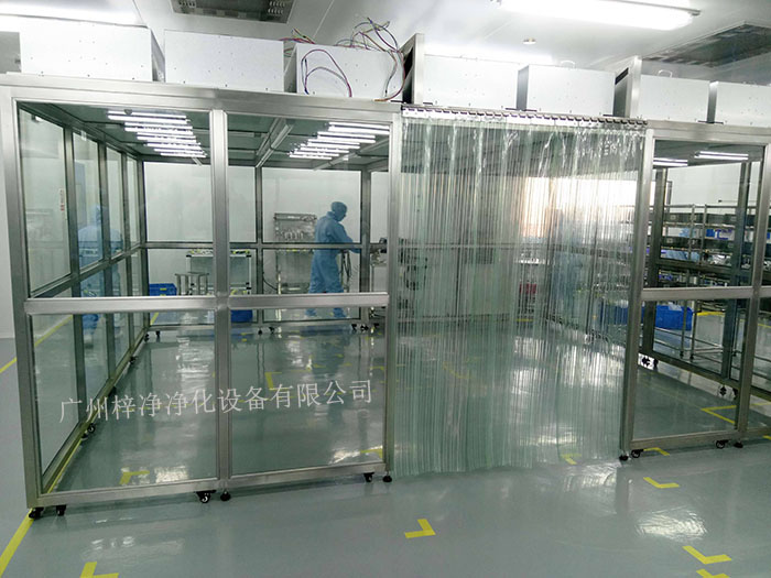 潔凈棚它主要從FFU頂部將空氣吸入,經初效過濾器,高效過濾器過濾,過濾后的潔凈空氣在整個出風面以0.45m/s±20%的風速勻速送出到潔凈棚內。形成均流層,使潔凈空氣氣流呈垂直單向流,從而保證了工作區內所要求的潔凈度。潔凈棚等級通常分為百級潔凈棚,千級潔凈棚,萬級潔凈棚。