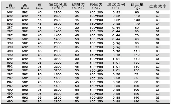 過濾效率:G1、G2、G3、G4