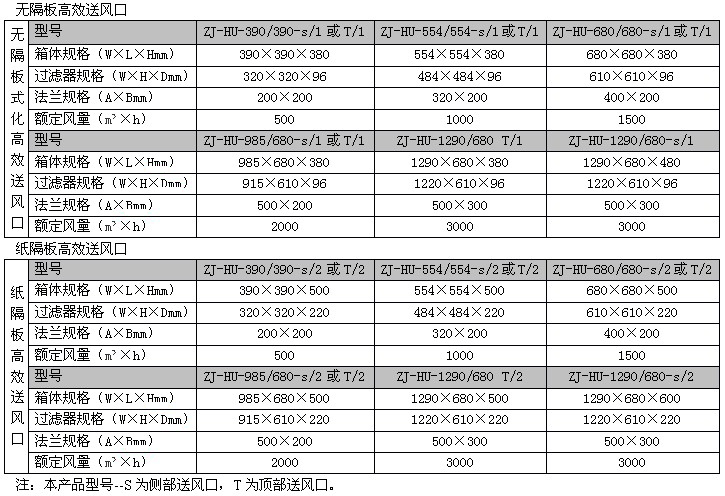 外形尺寸:554×554×540;680×680×520;985×680×470;1290×680×520;1210×600×250。液槽式高效送風(fēng)口高效過濾器效率99.95%@MPPS。